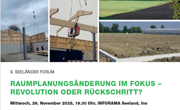 Seeländer Forum 2025 05/09/2025 von PAC Wir möchten Sie auf das traditionelle Seeländer Forum am INFORAMA Seeland am 26. November 2025 hinweisen. Dieses Mal zum Thema «Raumplanungsänderung im Fokus – Revolution oder Rückschritt?».Flyer download pdf